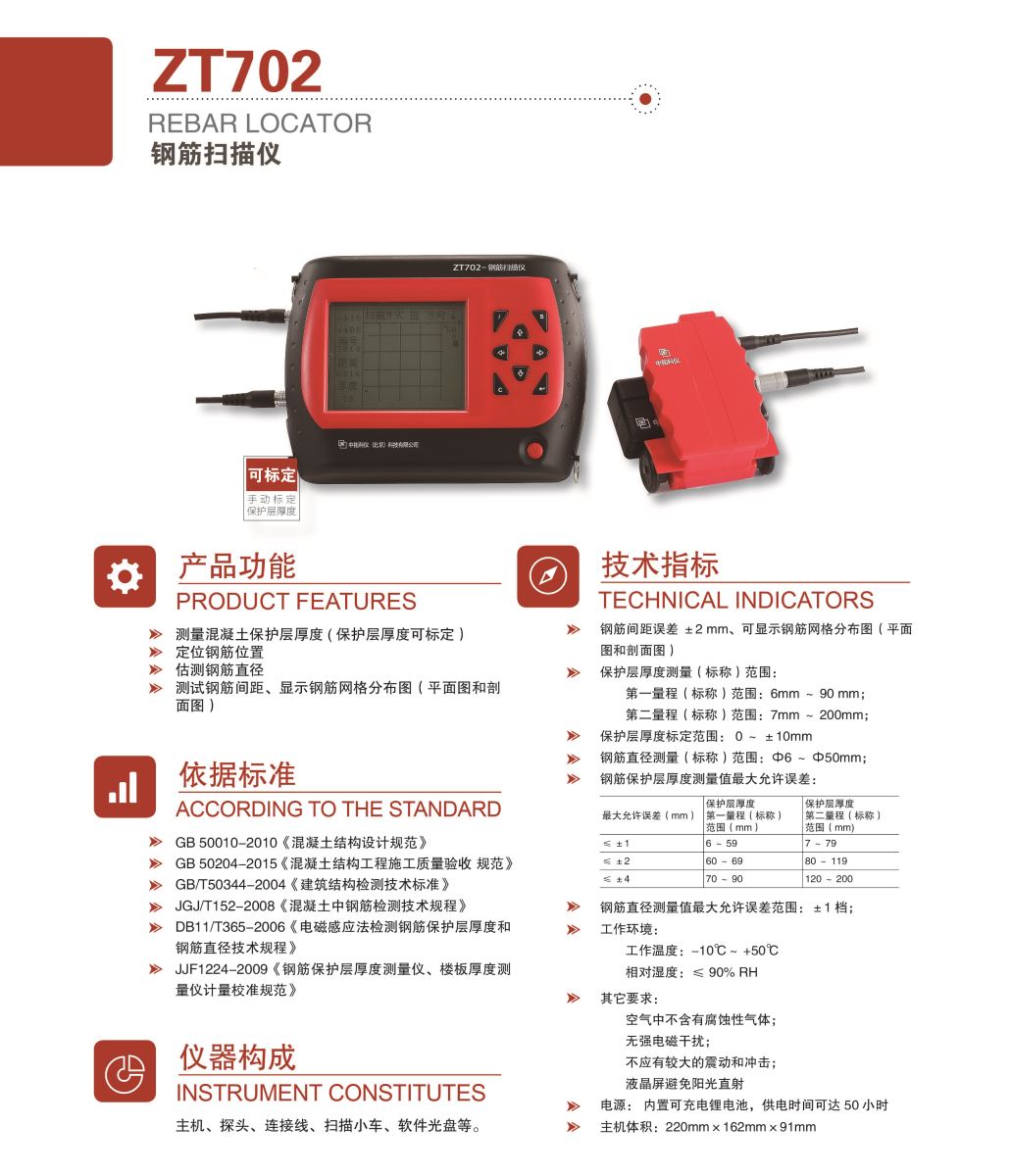 1.鋼筋間距誤差±2 mm、可顯示鋼筋網(wǎng)格分布圖(平面圖和剖面圖)