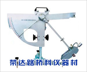 4、標定滑動長度:(1)用橡膠皮刷清除擺動范轉圍內路面上的松散顆粒和雜物。(2)讓擺自山懸掛,在橡膠片的外力平行擺動方向設置標準尺(126毫米),放松堅固把手,轉動升降把手。使擺緩緩下降,當滑溜塊上橡膠片剛接觸路面時,提起舉升柄使滑溜塊升高,將擺向右運動,并運動升降把手使擺下降一段距離,然后放下舉升柄使擺慢慢向左運動,直至橡膠片的邊緣剛剛接觸路面,對正126毫米尺的一端。再用手提起舉升柄,使滑溜塊向上抬起,并使擺繼續向左運動,放下舉升柄,再將擺慢慢向右運動使橡膠片的邊橡再一次接觸路面。橡膠片兩次同路面的接觸點的距離應為126毫米后,旋緊緊固把手,再校正一遍,若滑動長度不符合標準時,則升高或降低儀器底座正面的調平螺絲來校正,但須調平水準泡。使滑動長度符合要求。爾后,將擺置于水平釋放位置。